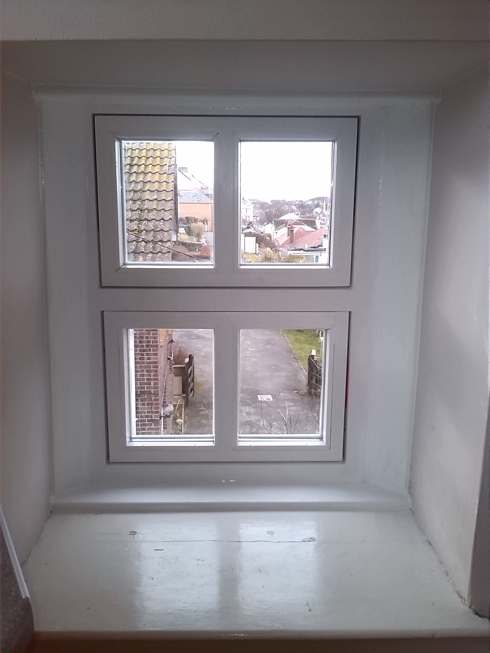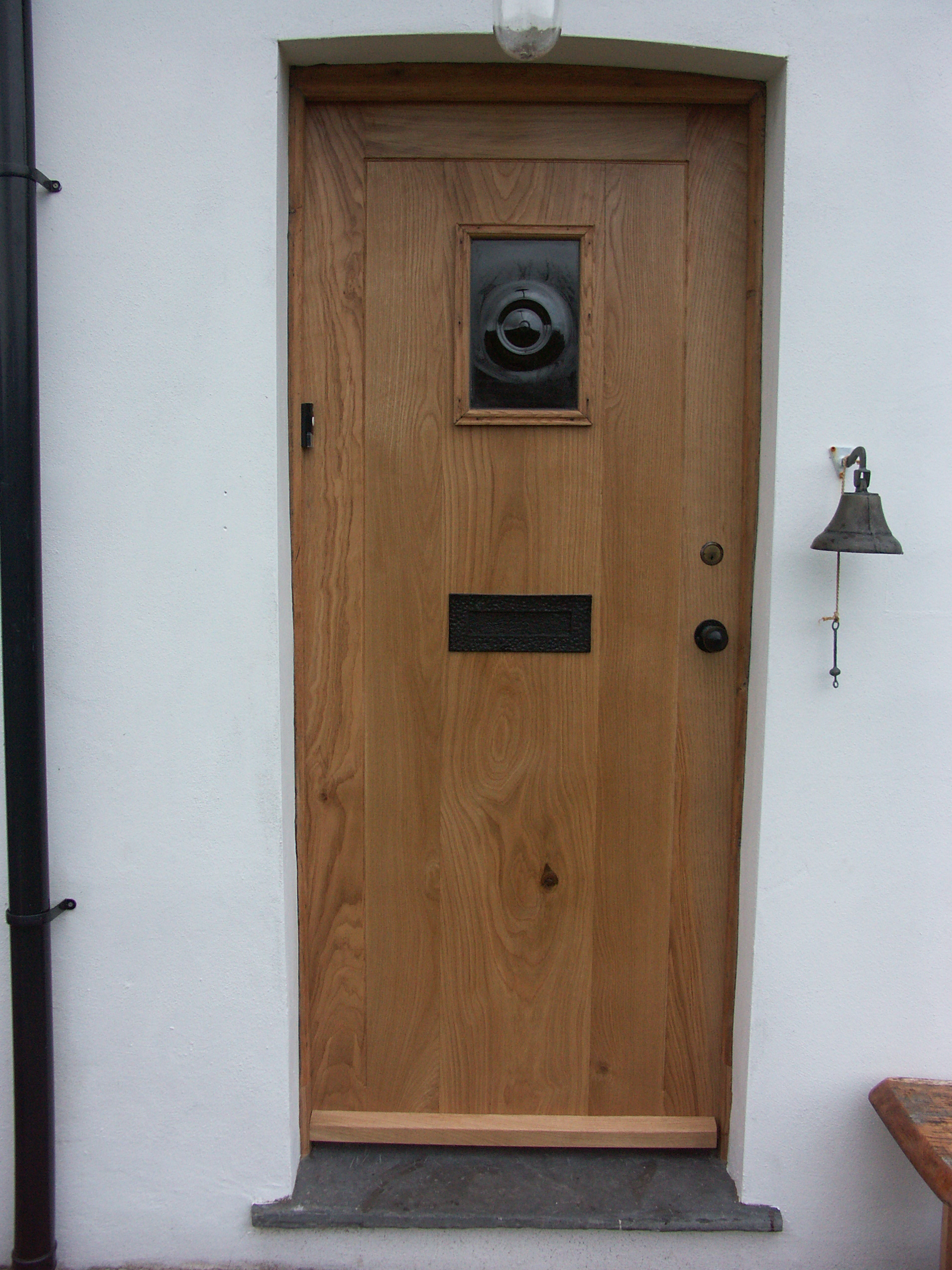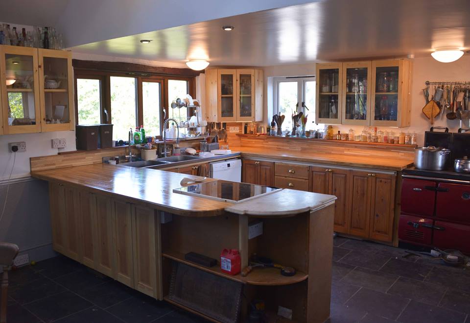 kitchen refurbishment with new panel doors, massive oak worktops and massive pine wall hung units with glazed doors.